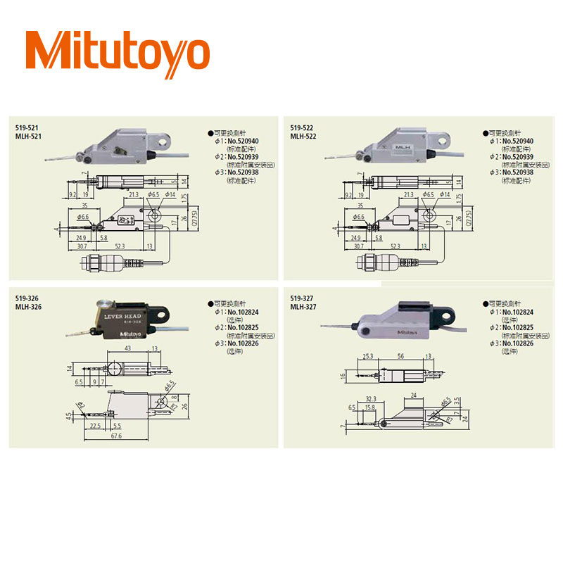 • 519系列 — Mu-Checker(電子測微計) 測頭(杠桿式測微頭/芯式測微頭)